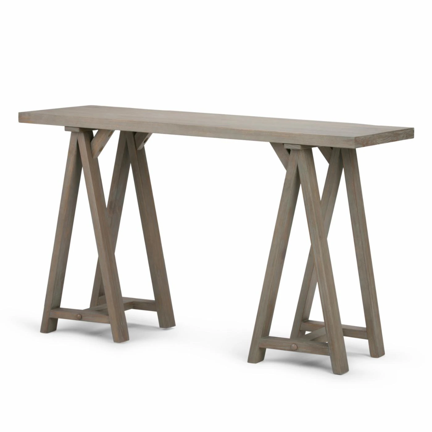 Bring a rustic touch to your entryway or living room with the Brooklyn + Max Spokane Pine Wood Console Table. This console table has unique sawhorse supports and a large design. This table is ideal for display in the entryway or placing behind a couch for décor.