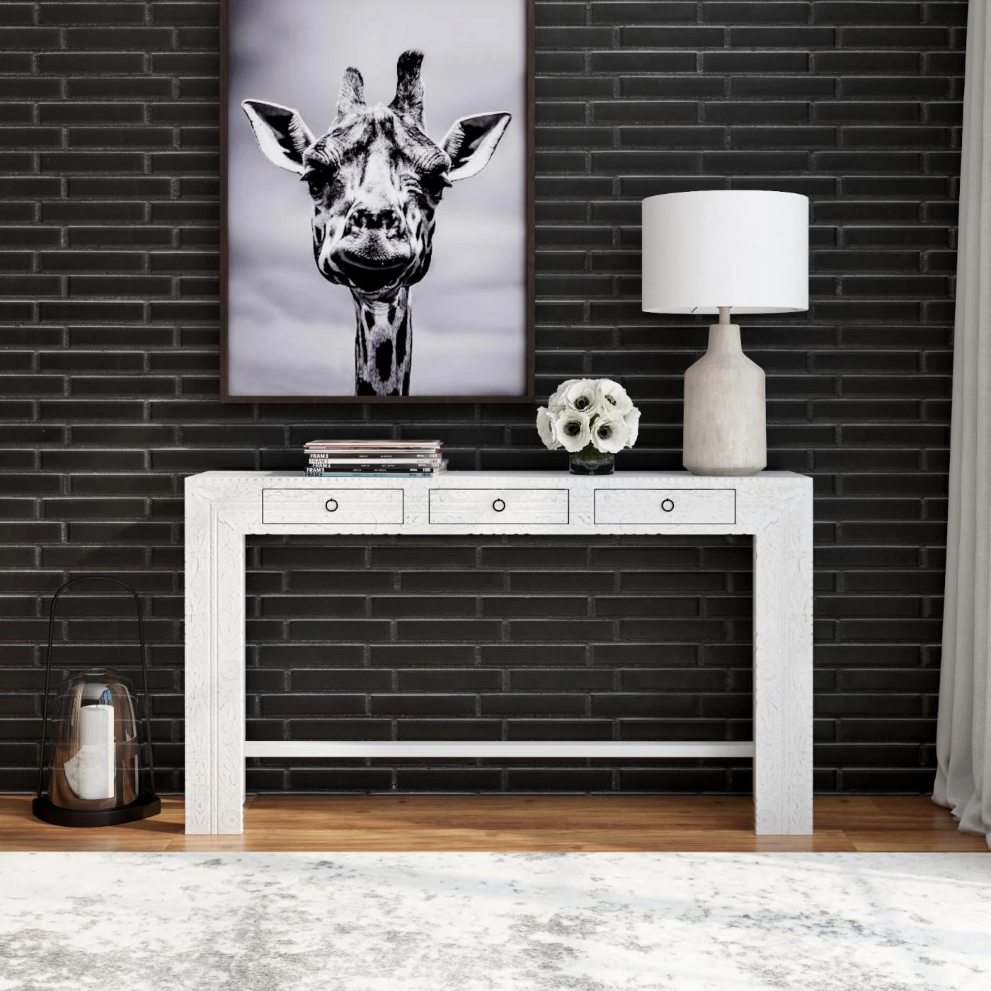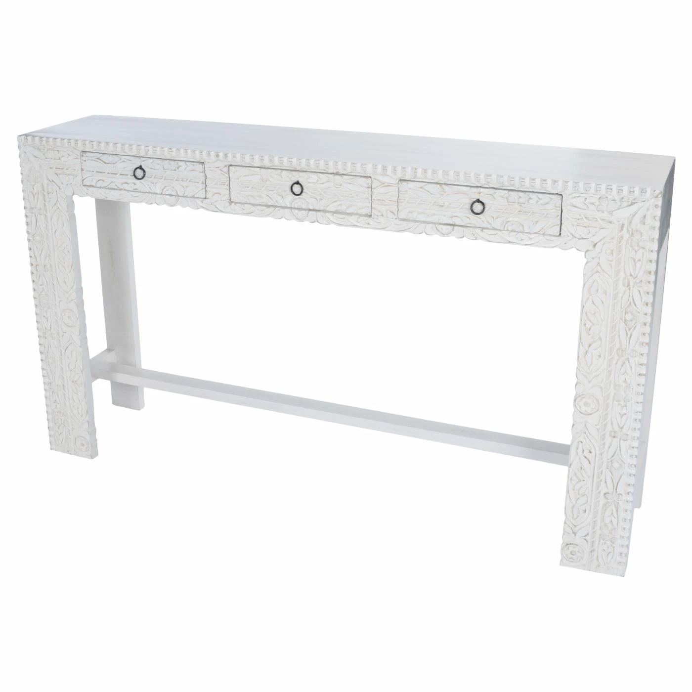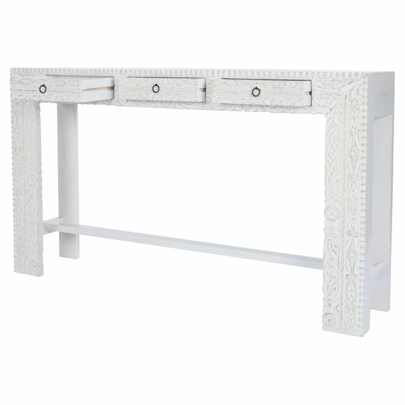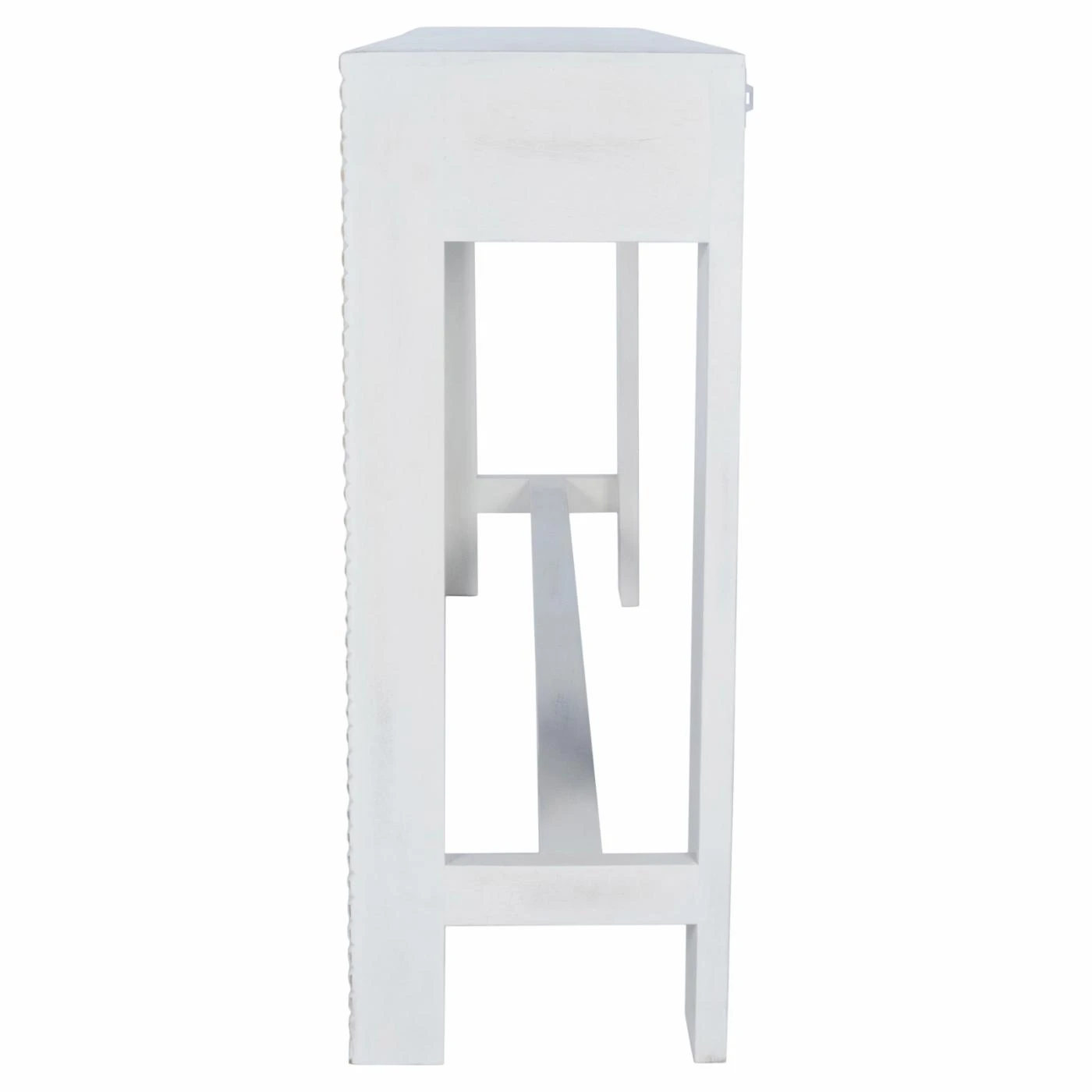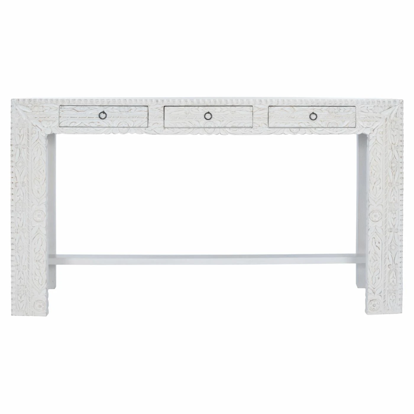 A transparent Washed finish keeps a spotlight on the extraordinaire carved front of the Butler 2069290 Console Table – Artifacts. Crafted and hand carved from exotic mango wood solids and recycled wood, this console is destined to be the brightest spot in the room.