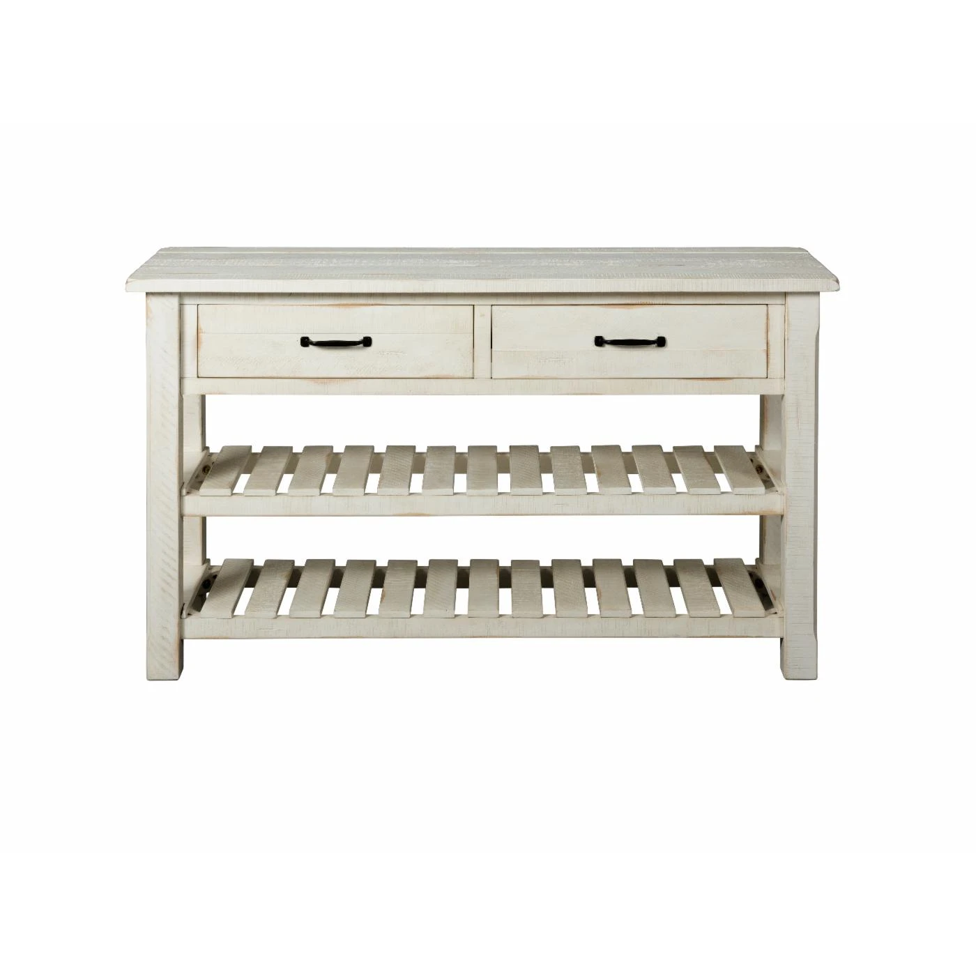 - Two (2) bottom slatted shelves offer additional storage including 12 wine bottles