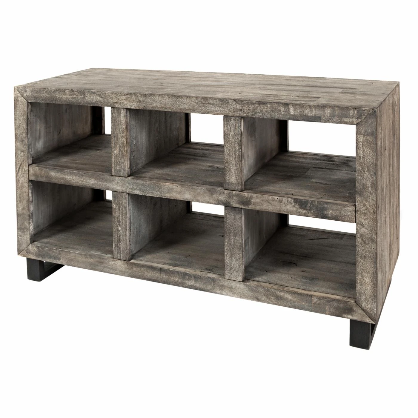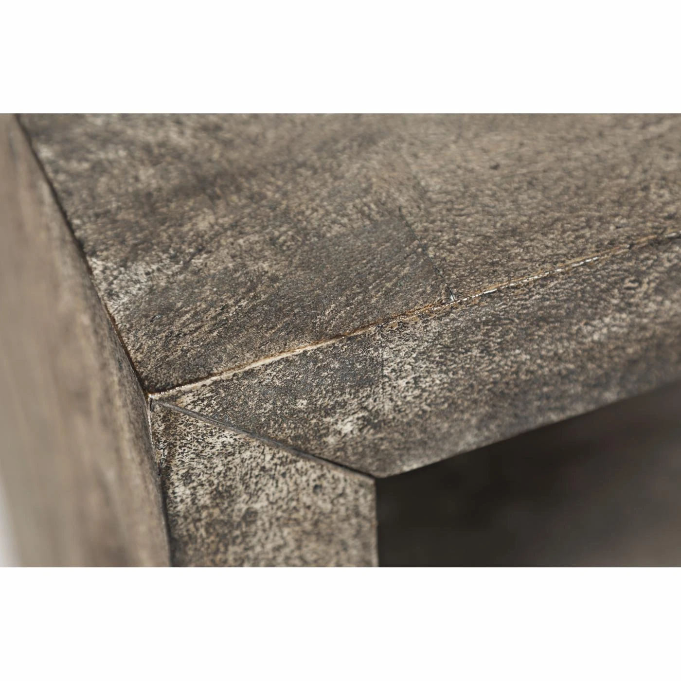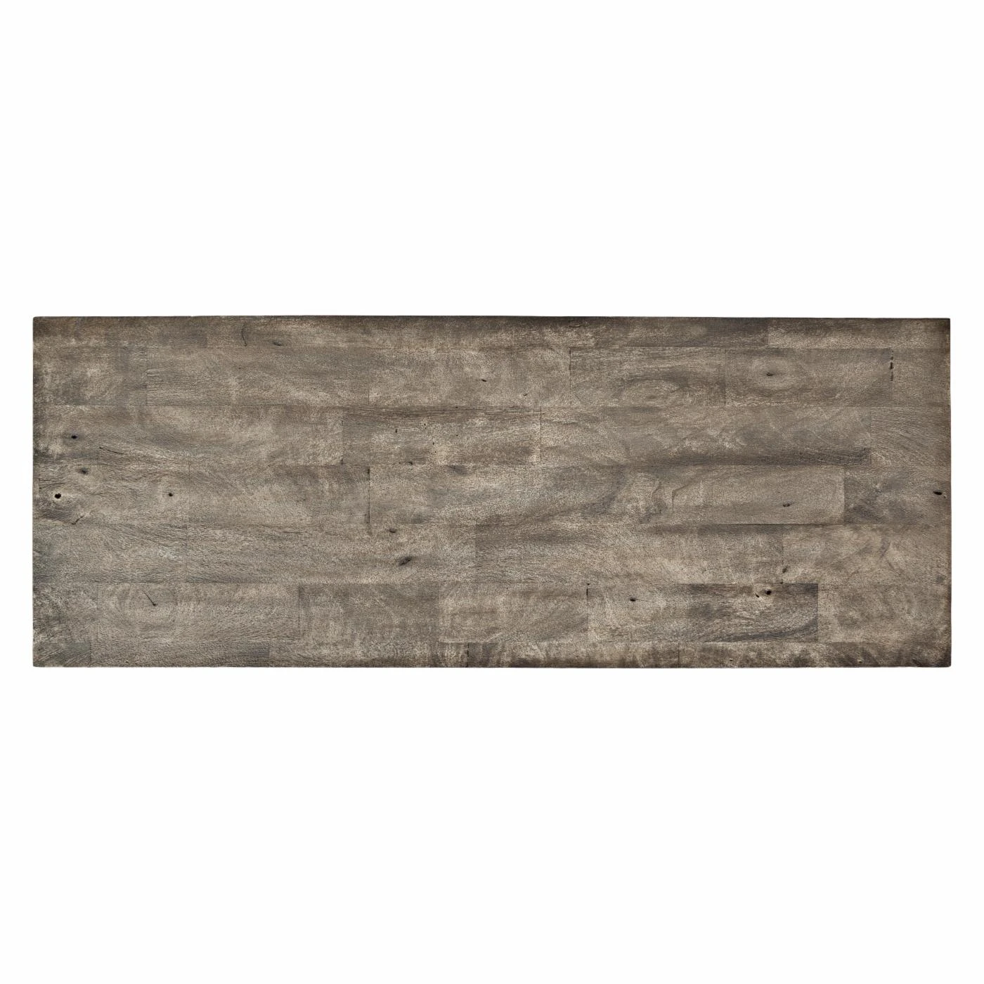- Distressed gray finish
