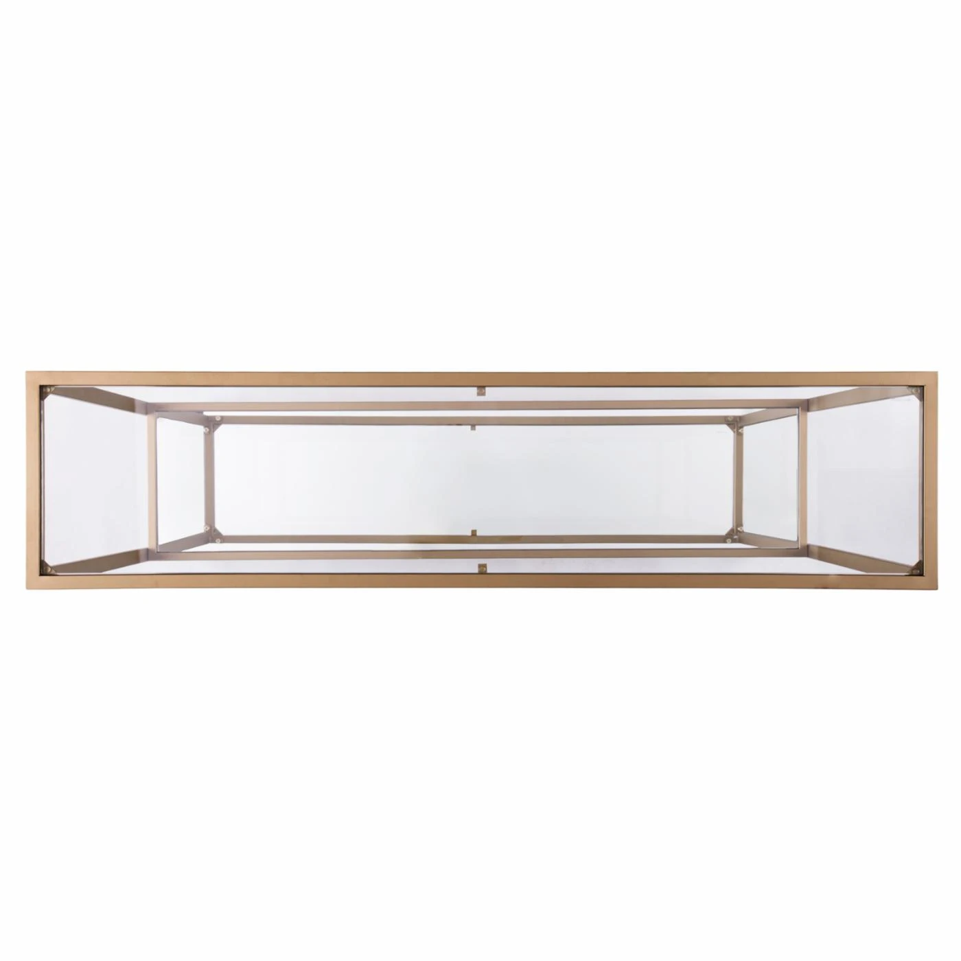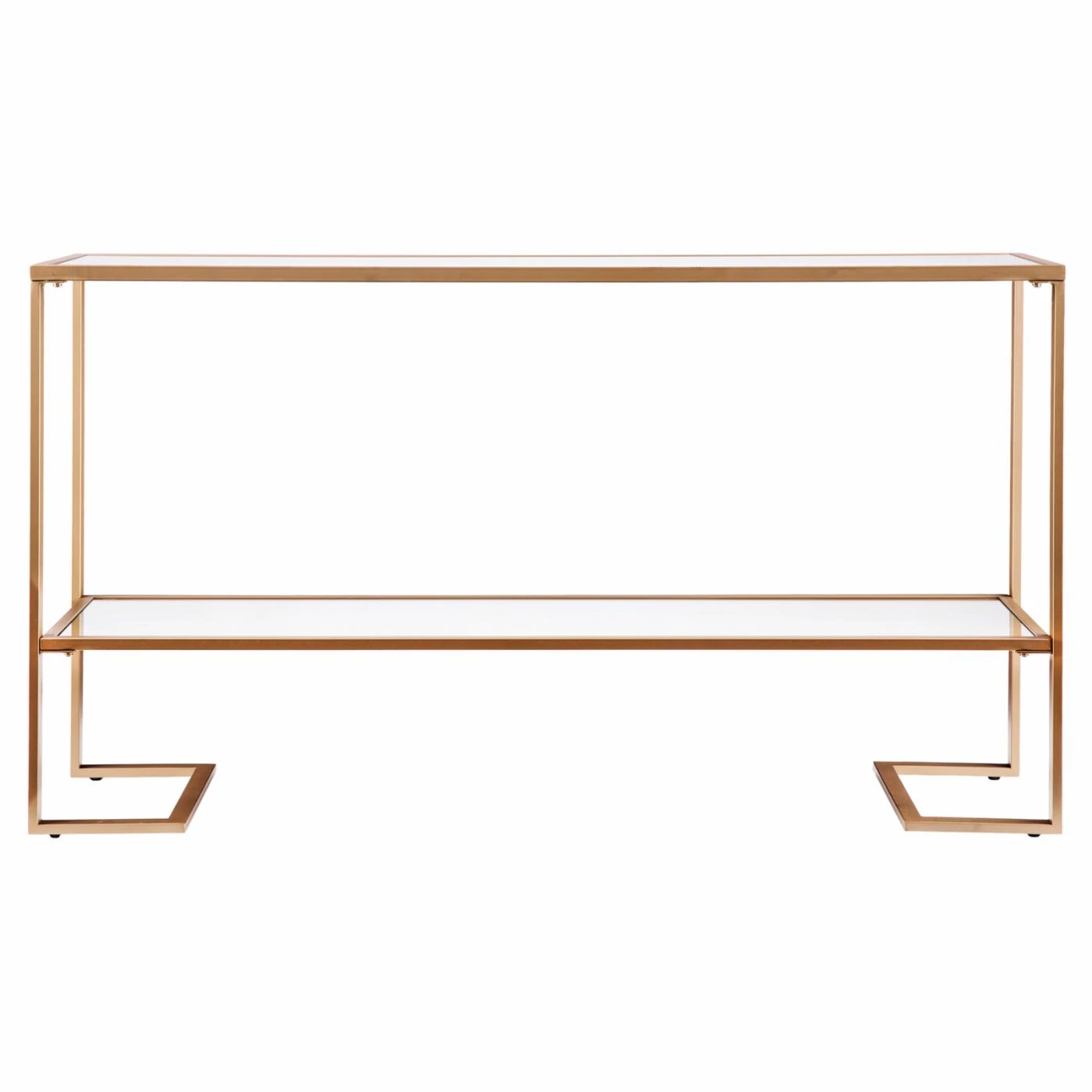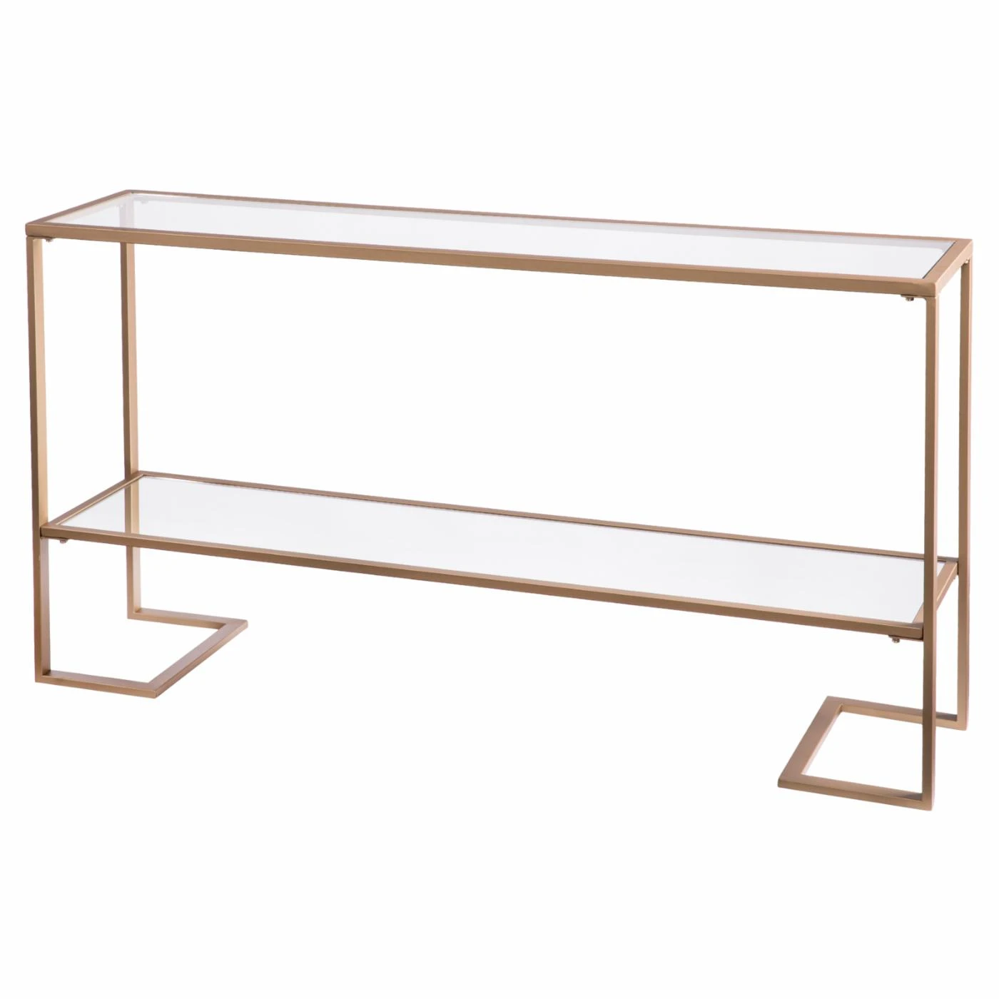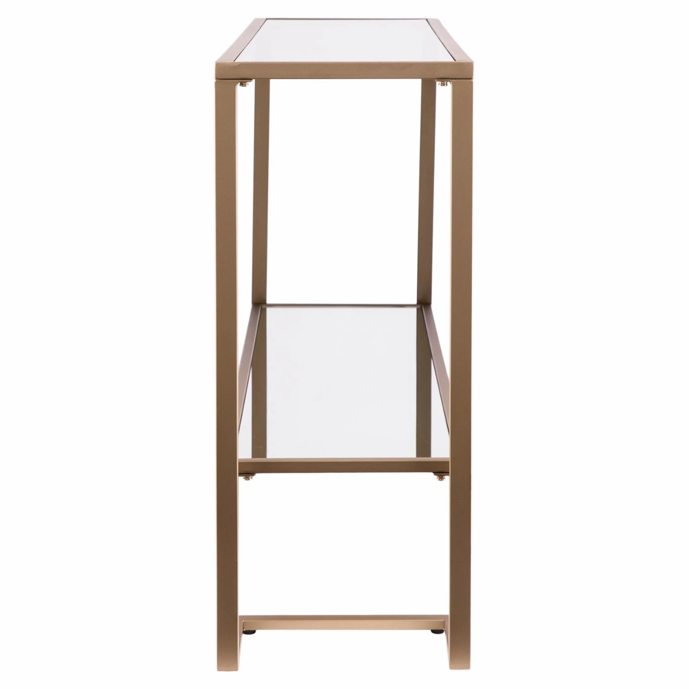 With its slim profile, the Southern Enterprises Horten Narrow Console Table works for entryway, dining room, landing, and home office. The clear glass surface and mirrored lower shelf enliven your space and showcase your treasures. The iron frame features a gold finish.