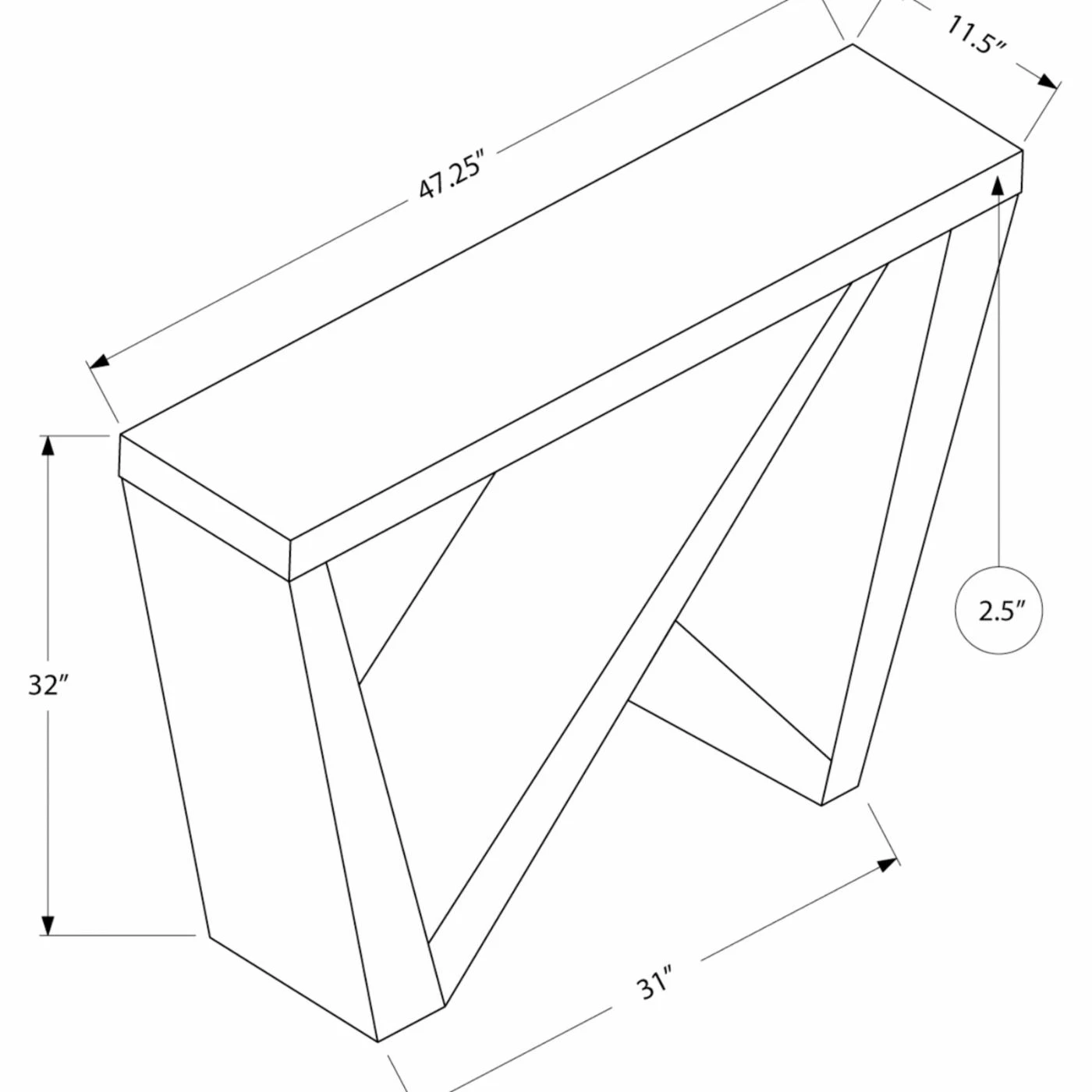 The Monarch 48 in. Hall Console Table is a thoughtful way to add artistic flair to any living space. With a practical rectangular surface, you can display precious items, books, or even your keys and daily mail. The asymmetrical frame offers a modern, bold presentation. This table is an accent piece, statement piece, or even a conversation piece, depending on how you decide to utilize it.