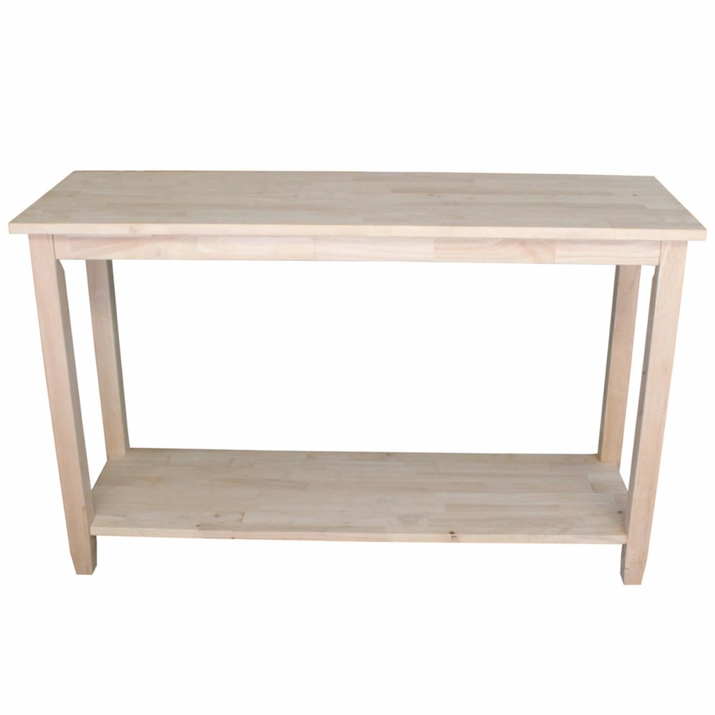The International Concepts Solano Console Table is tall, lean, and wide, making it perfect behind your sofa or in a hallway. This console table is constructed of solid wood, is unfinished so you can paint or stain as you choose, and includes a base shelf for twice the display space.