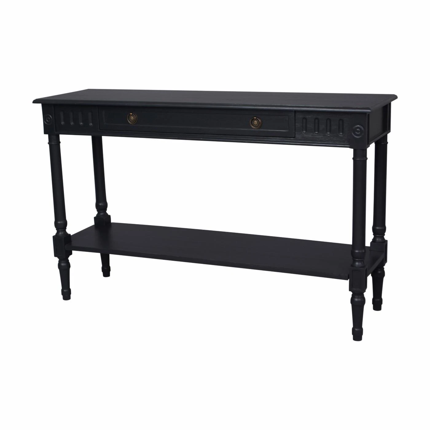Place the East At Main Evangeline Console Table behind your sofa for display of your favorite photo frames, candles, and other decorative items. This console table is handcrafted of bayur wood and adorned with elegant carvings and turned wood legs that lend to its classic look. Choose from the available finishes.
