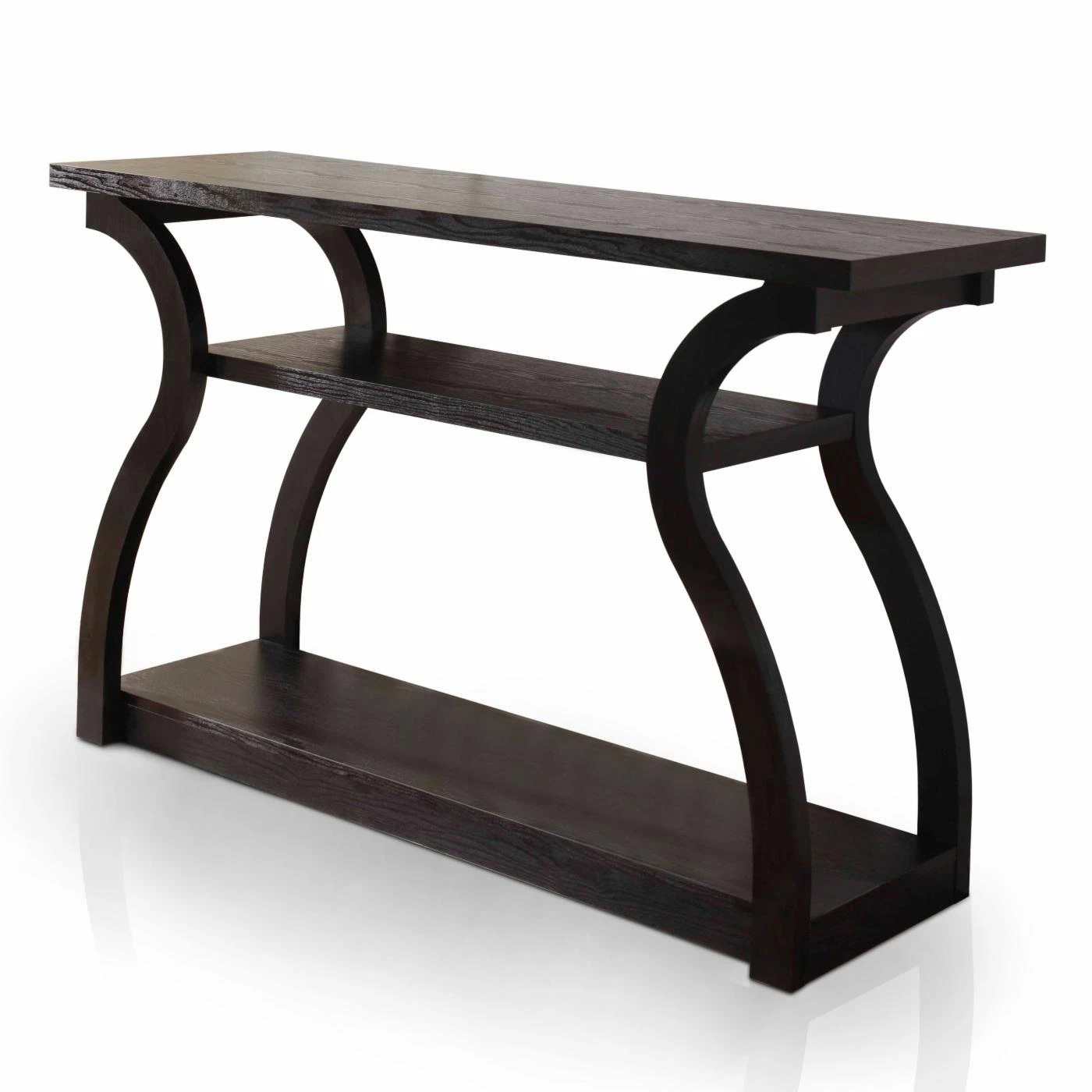 The Furniture of America Brenda Console Table features curved legs that create an eye-catching silhouette that adds an interesting design touch to any room in your home. Three tiers of open storage allows you to mix and match baskets, books, and decorative items to personalize this sleek piece. The wide bottom shelf provides stability to this piece, making it a durable addition to your home.