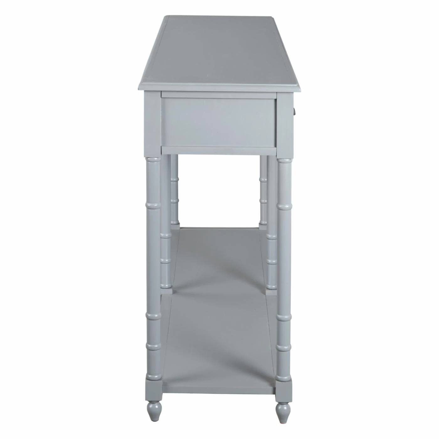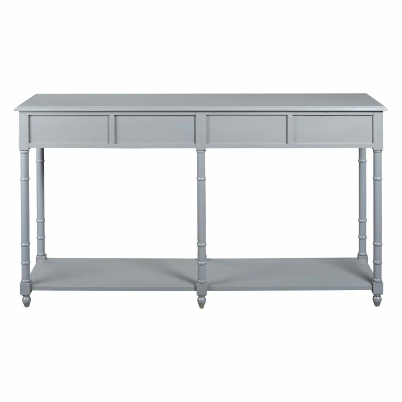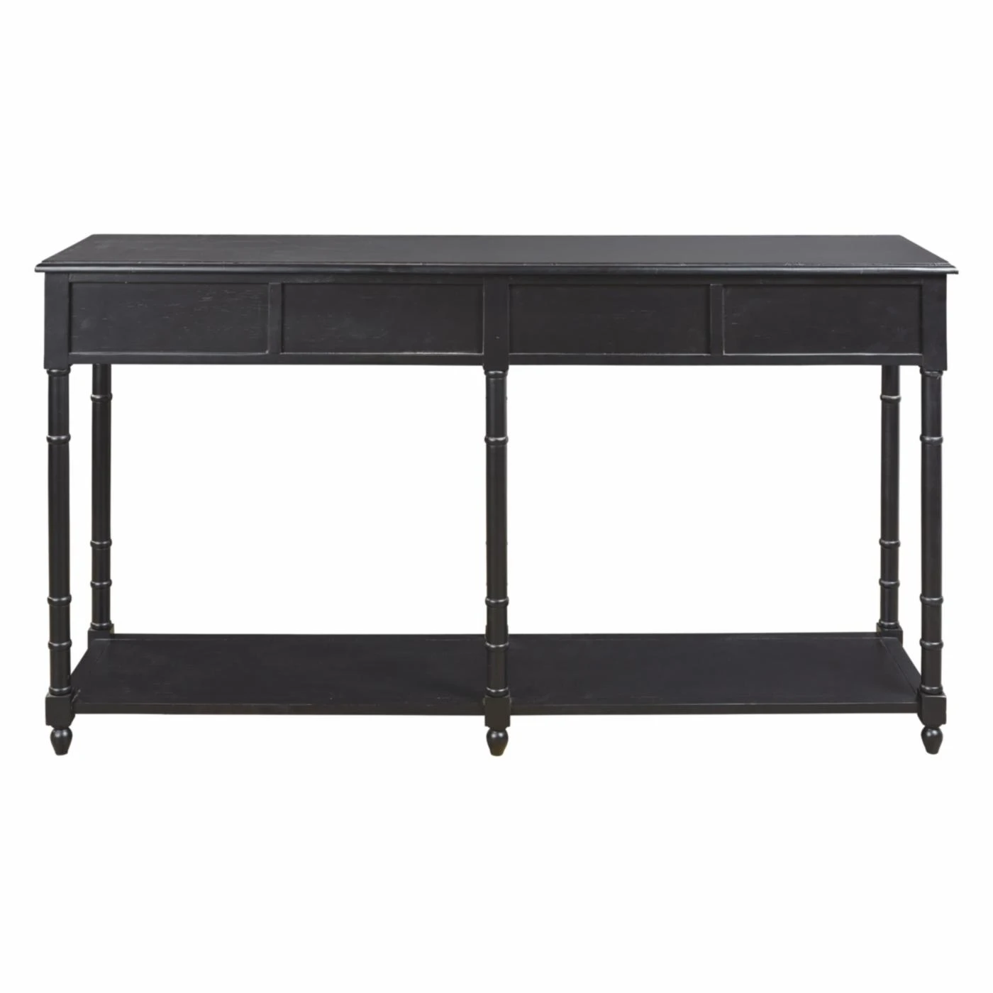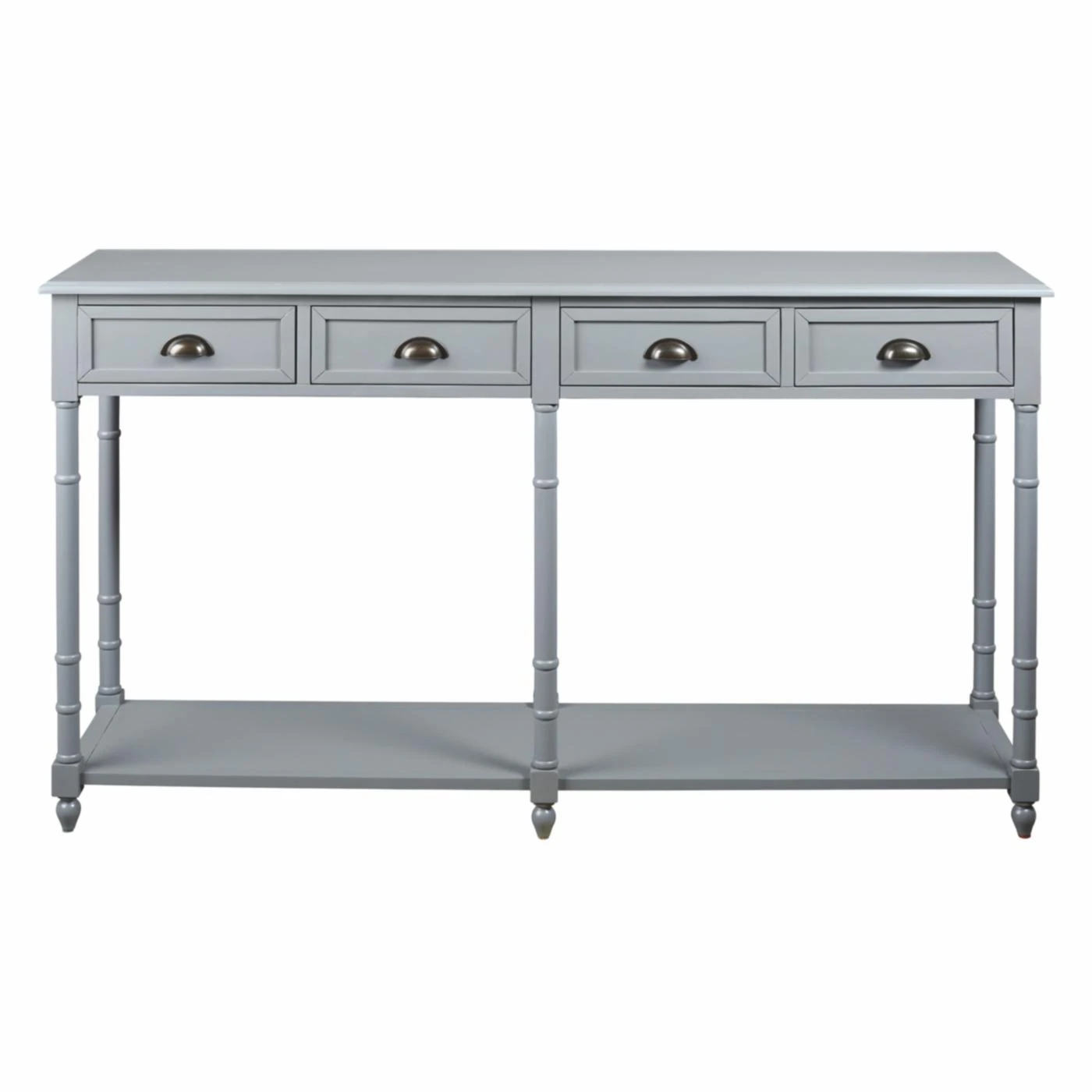 Storage and style are best friends when it comes to the Signature Design by Ashley Eirdale Console Table, making it your dream come true. From its turned legs to its framed drawer fronts, this console table is a study in classic elegance. Its veneers, solid, and engineered wood construction is topped in the available finish of your choosing for the perfect complement to your home. Four smooth-gliding drawers and one lower shelf give you excellent storage and display potential. Cupped metal drawer pulls in an antique bronze equip the drawers and lend a final chic flourish.