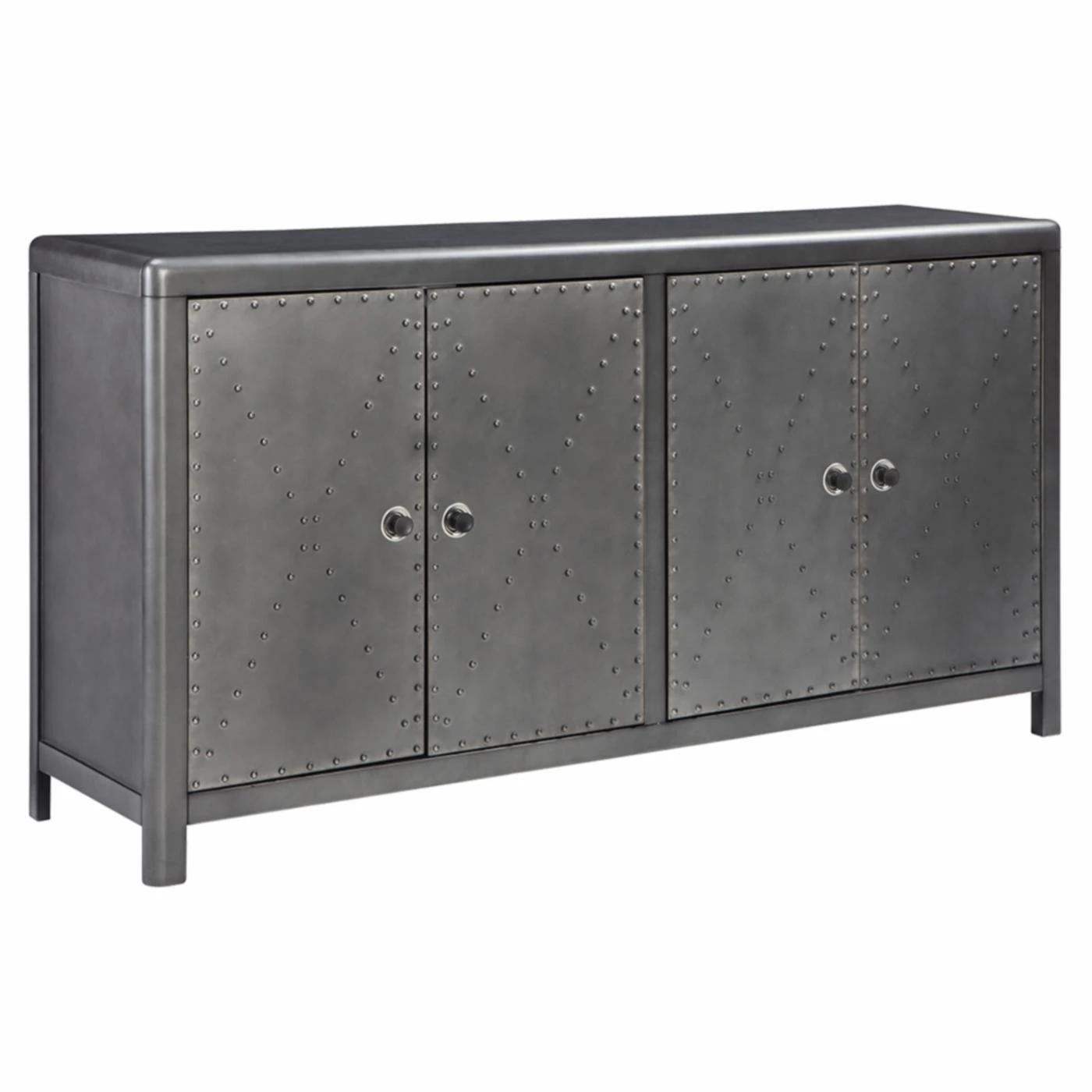 From a contemporary loft to a traditional home, the Signature Design by Ashley Rock Ridge 68 in. Four Door Accent Cabinet is the perfect solution to bring industrial design into your space. You’ll love this incredible four-door accent cabinet that features nailhead trim for a dash of updated style. Behind the doors are adjustable shelves to give you versatility for all of your storage needs.
