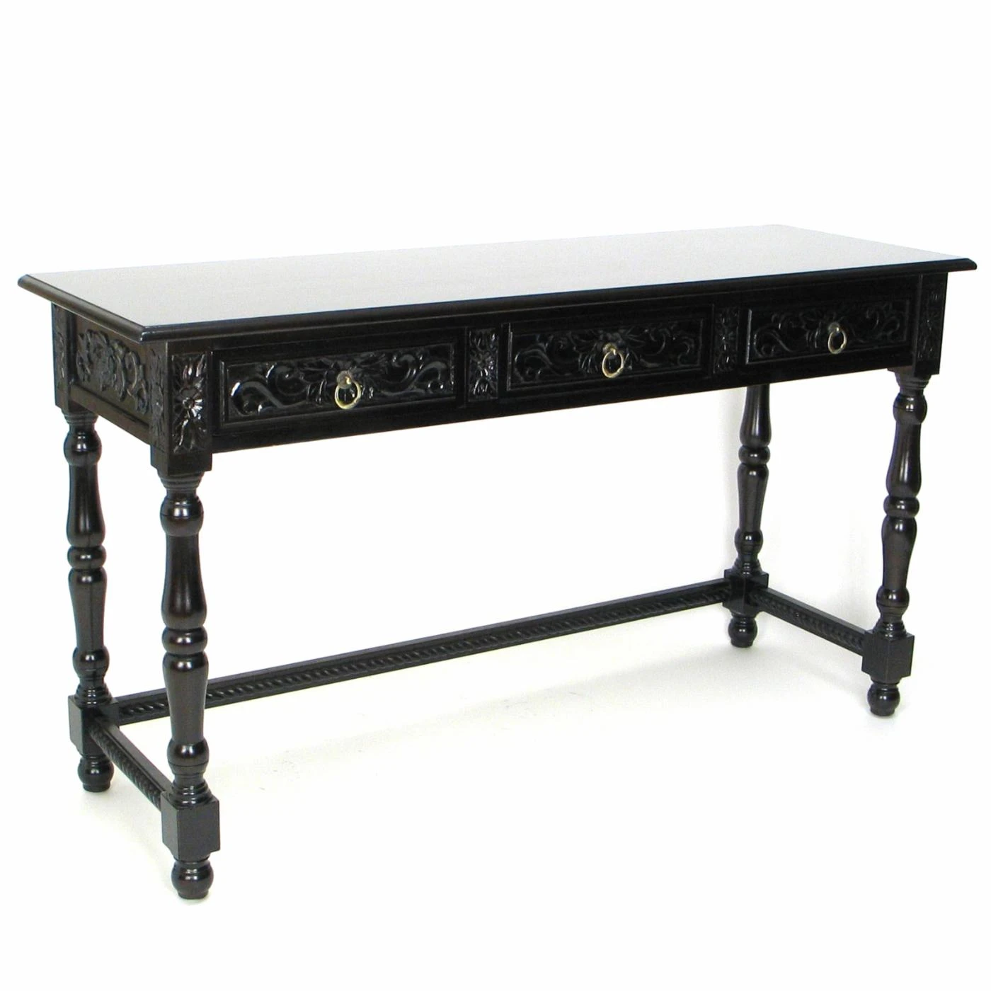 Classic styling defines the Wayborn George Rectangular Console Table. Turned legs and ornate carvings on the three drawer fronts lend antique appeal to this piece.